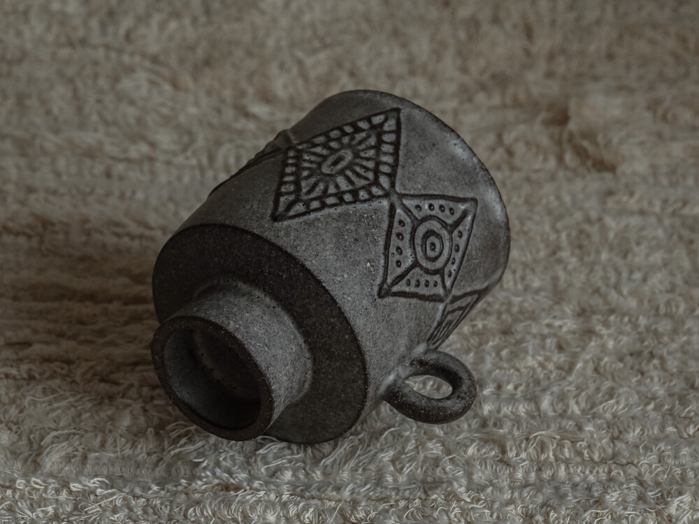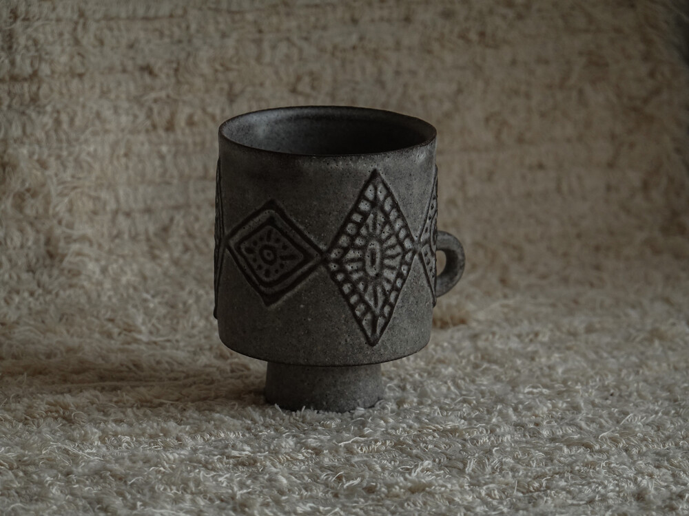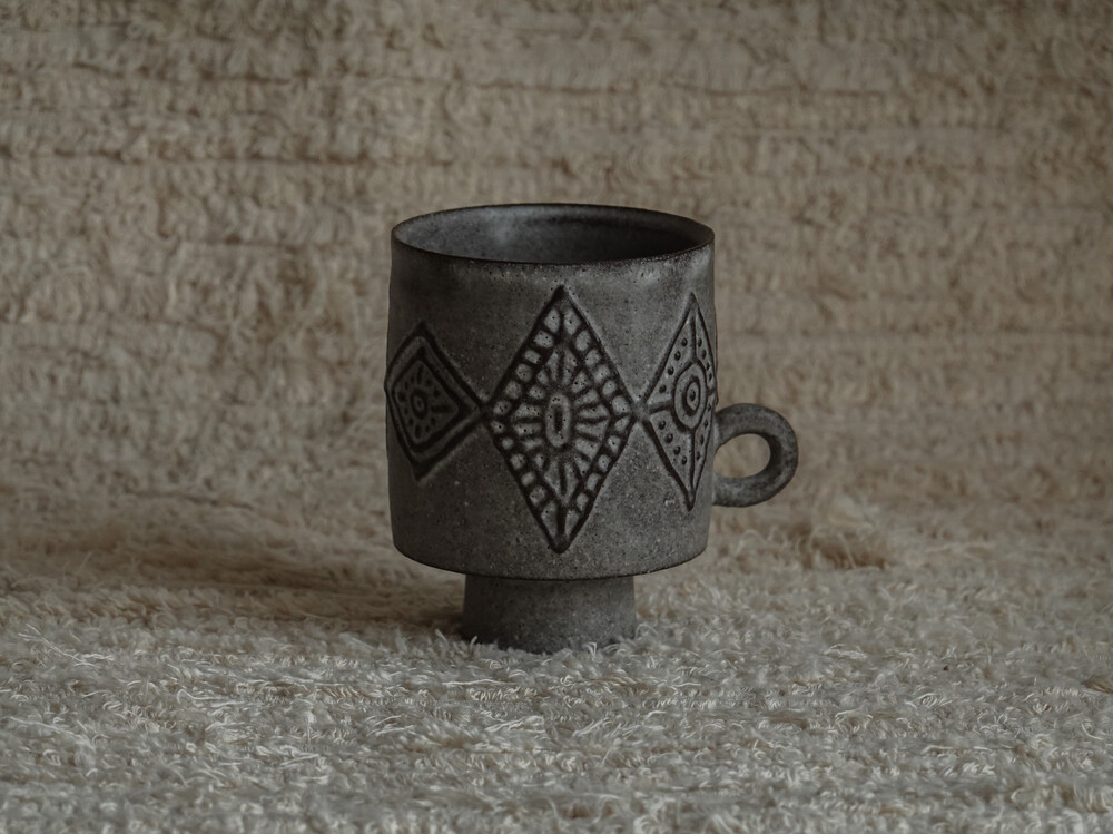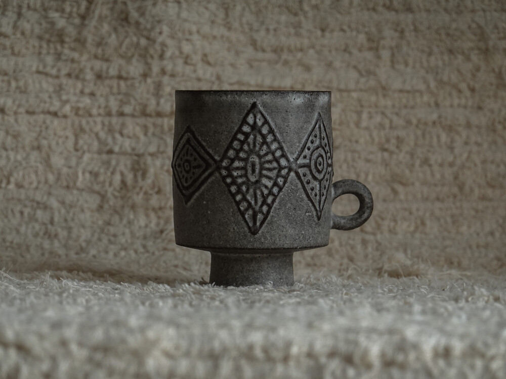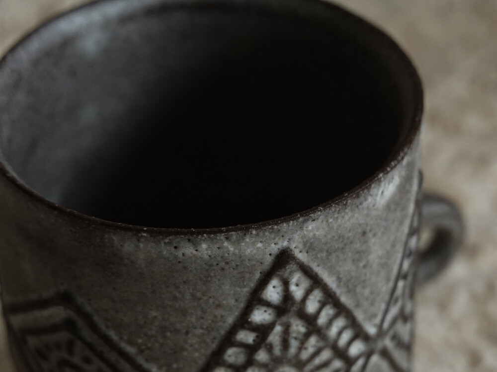 무광의 유약으로 마감처리한 컵입니다. 음식물로 인한 이염에 취약할 수 있으니 사용에 주의하시길 바랍니다.