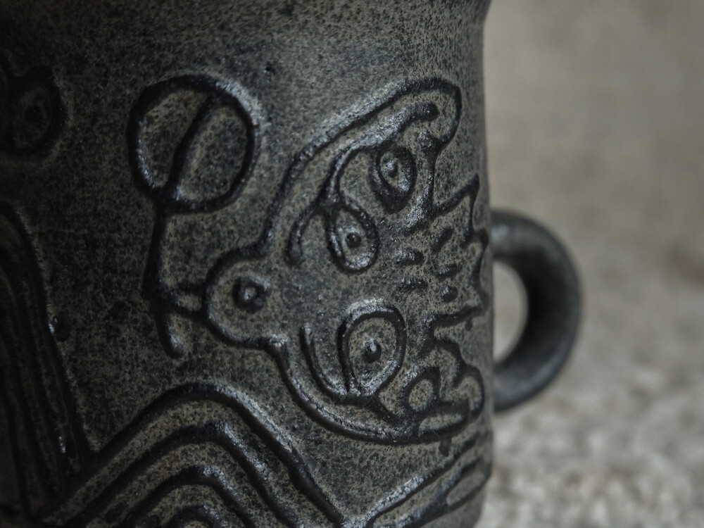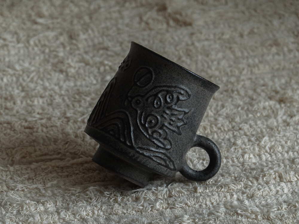 무광의 유약으로 마감처리한 컵입니다. 음식물로 인한 이염에 취약할 수 있으니 사용에 주의하시길 바랍니다.