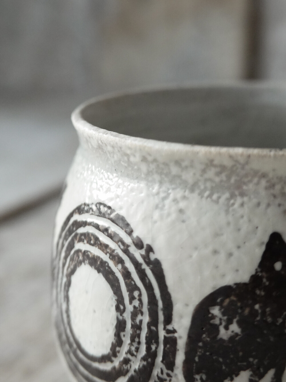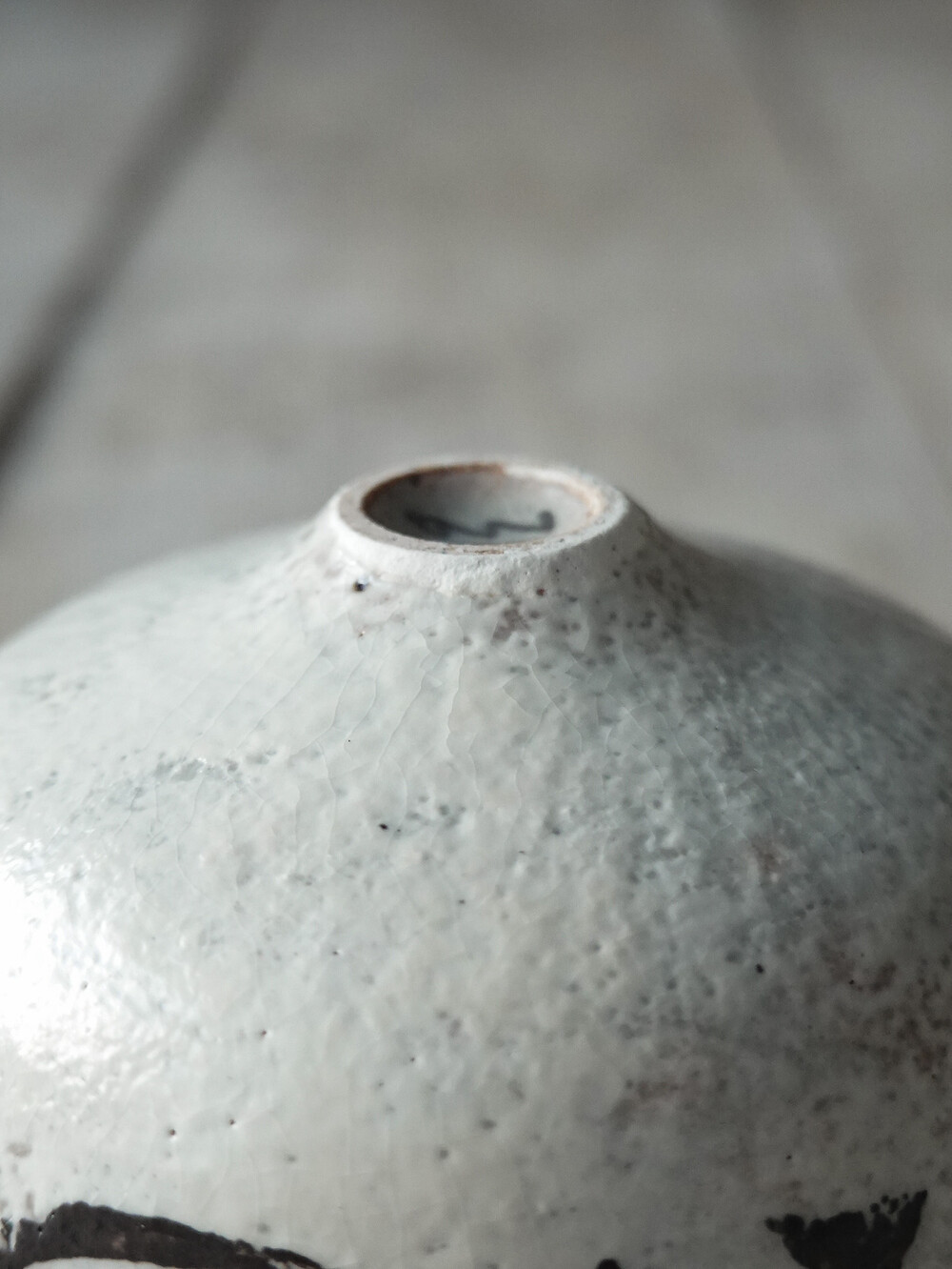 유약과 흙의 수축률 차이로 인해 생기는 미세한 균열로, 제작 의도에 따라 표현된 자연스러운 현상입니다.