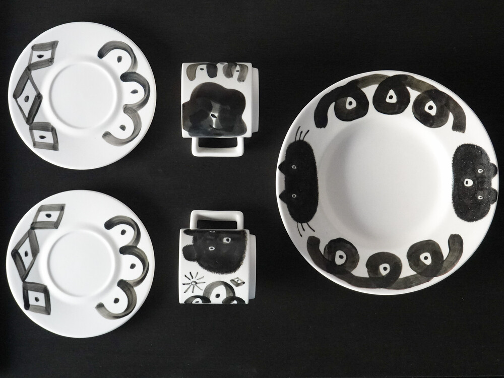 핸드페인팅 기법으로 그려낸 사랑스러운 털복숭이들의 디테일들과 은은한 펄감이 느껴지는 유약의 질감으로 마냥 가볍지 않은 공예적 감도도 더했습니다.