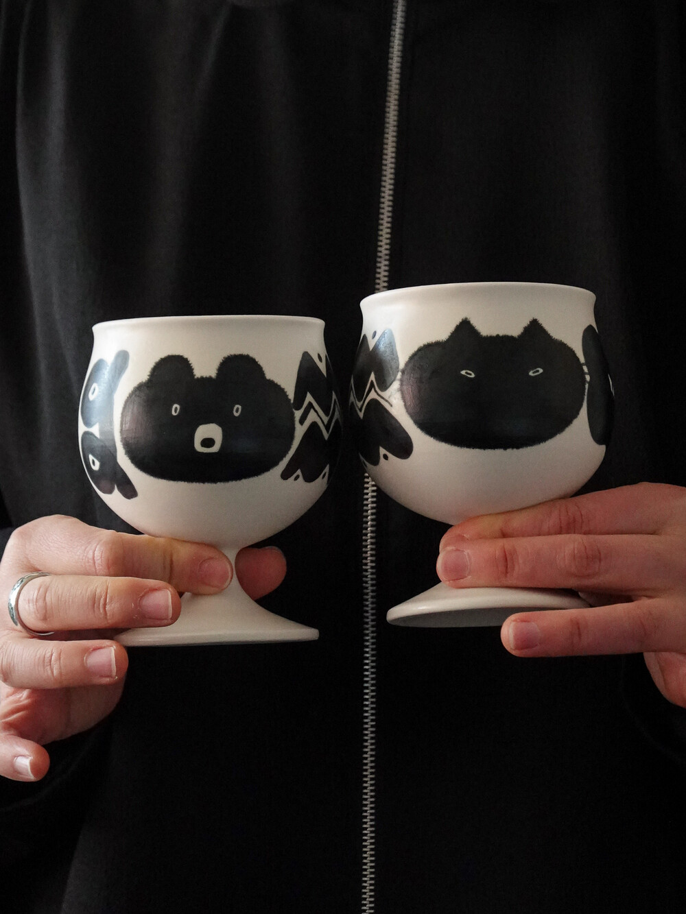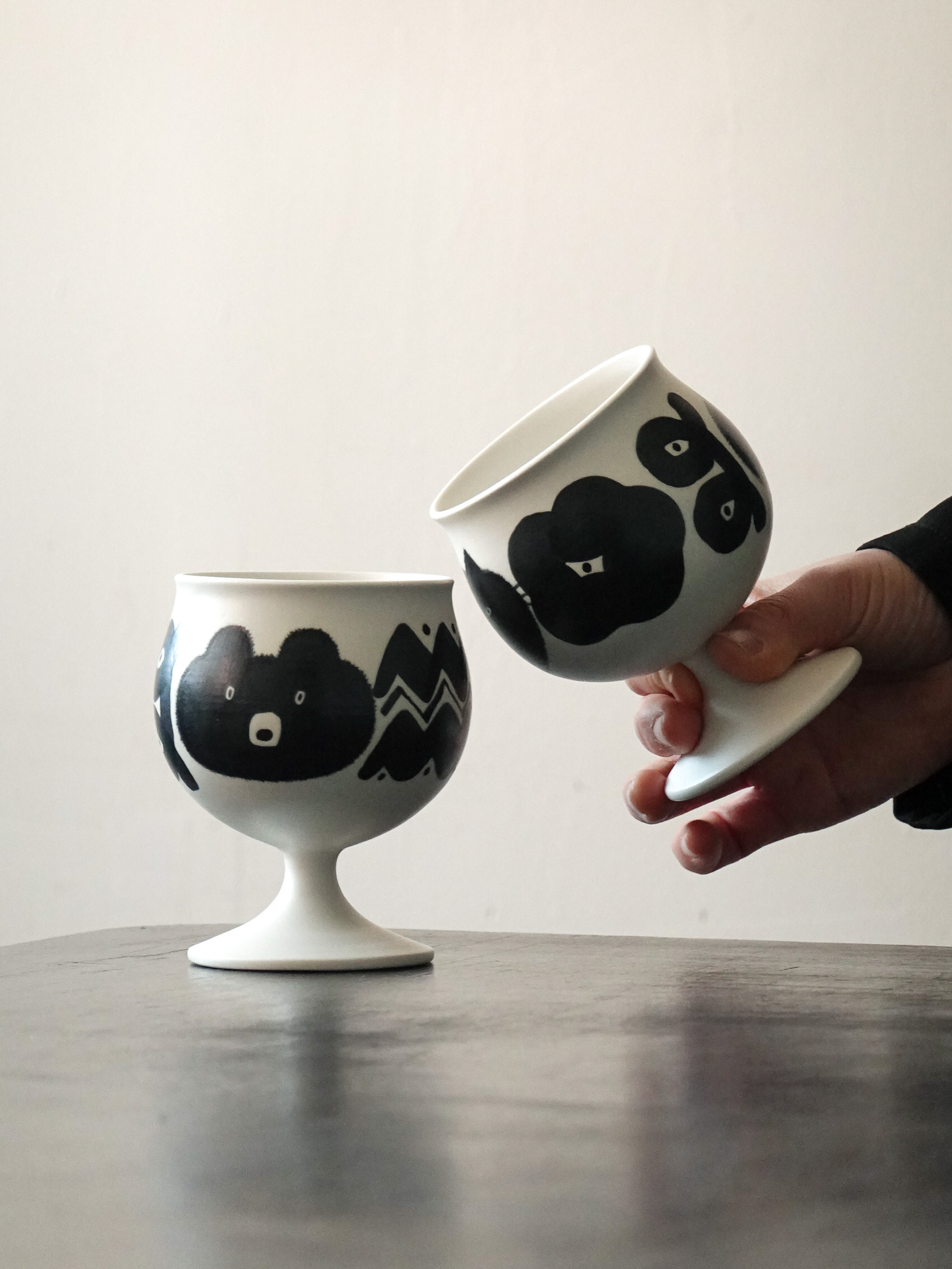 핸드페인팅 기법으로 그려낸 사랑스러운 털복숭이들의 디테일들과 은은한 펄감이 느껴지는 유약의 질감으로 마냥 가볍지 않은 공예적 감도도 더했습니다.